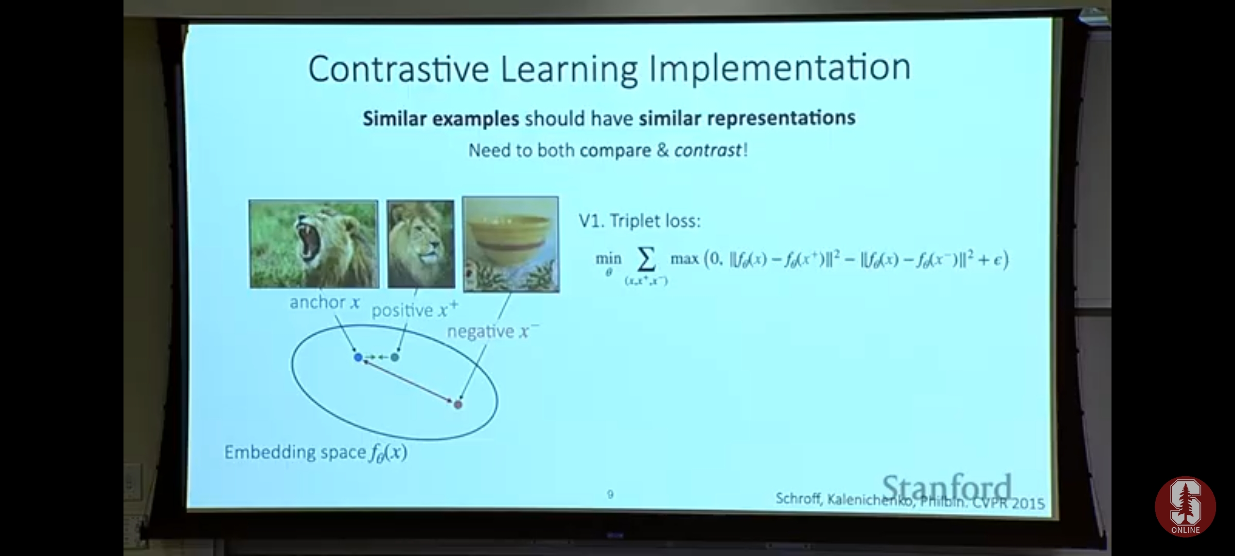 As the name suggests contrastive learning learns by “contrasting” between the examples (which are actually vectors), now our goal is to make our model learn that similar examples are similar and non similar ones are not. We do this by having cost functions that serve this purpose, since our goal is to always minimize the cost function we should make cost functions that calculate the errors in our predictions. I am sharing 2 cost functions below.